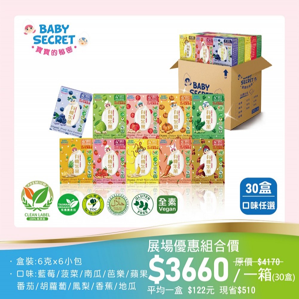 【BABY SECRET 寶寶的秘密 】 有機米菓~30盒(口味任選)