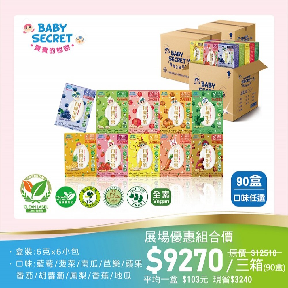 【BABY SECRET 寶寶的秘密 】 有機米菓~90盒(口味任選)
